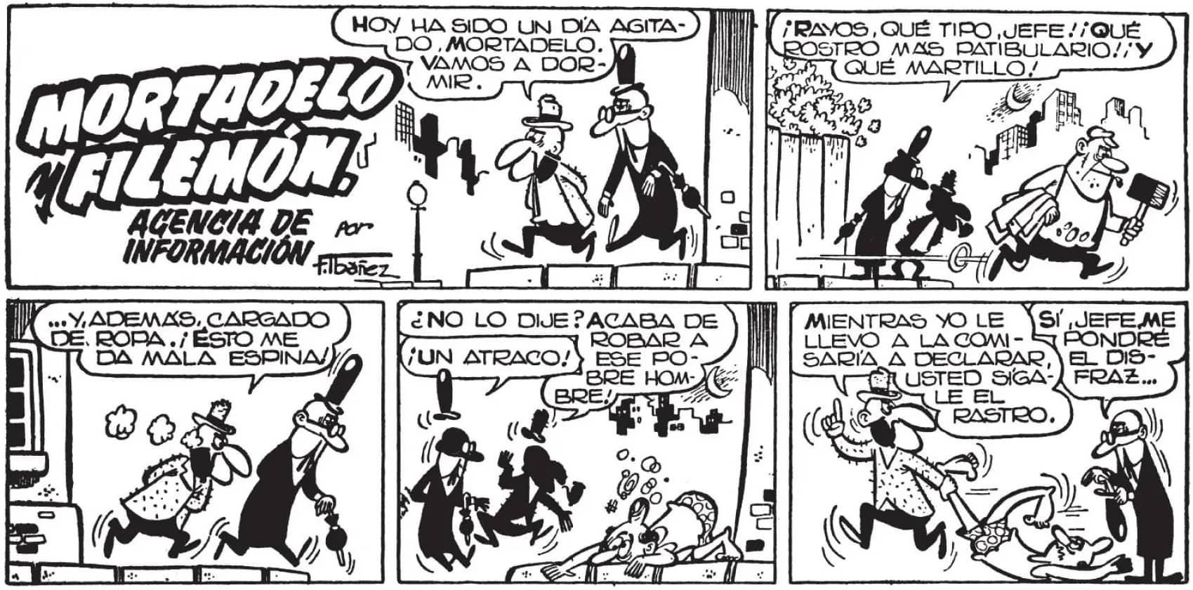 Aconseguir l’èxit és difícil. Mantenir-se encara és més complicat. Aquest és un primer punt que cal tenir en compte. A Francisco Ibáñez no li agradava presumir de premis ni de distincions, però valorava molt allò que hauria de ser el tresor més gran per a qualsevol que publica llibres: ser llegit. Ell va poder gaudir en vida de ser un autor molt llegit (i fins i tot molt estimat, doble èxit), i ho va ser durant dècades, i encara avui, quan les seves obres segueixen reeditant-se i llegint-se i estan ben presents a les llibreries. Aquest reconeixement li va venir sobretot pels primers personatges que va crear per a la històrica Editorial Bruguera, una parella de detectius incompetents però divertidíssims. Dos personatges anomenats Mortadel·lo i Filemó.